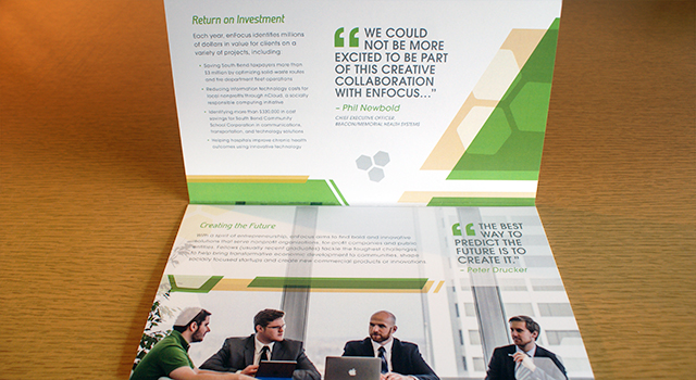 I designed the materials so when placed on a table; they formed a hexagon. Rather than just putting printed materials on a table, they could display them in a fun way. I’m a big advocate of every aspect of design.