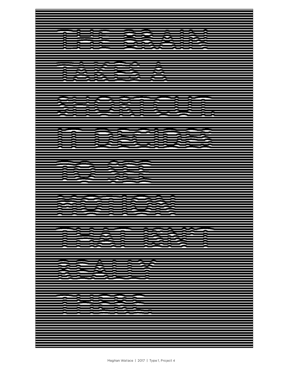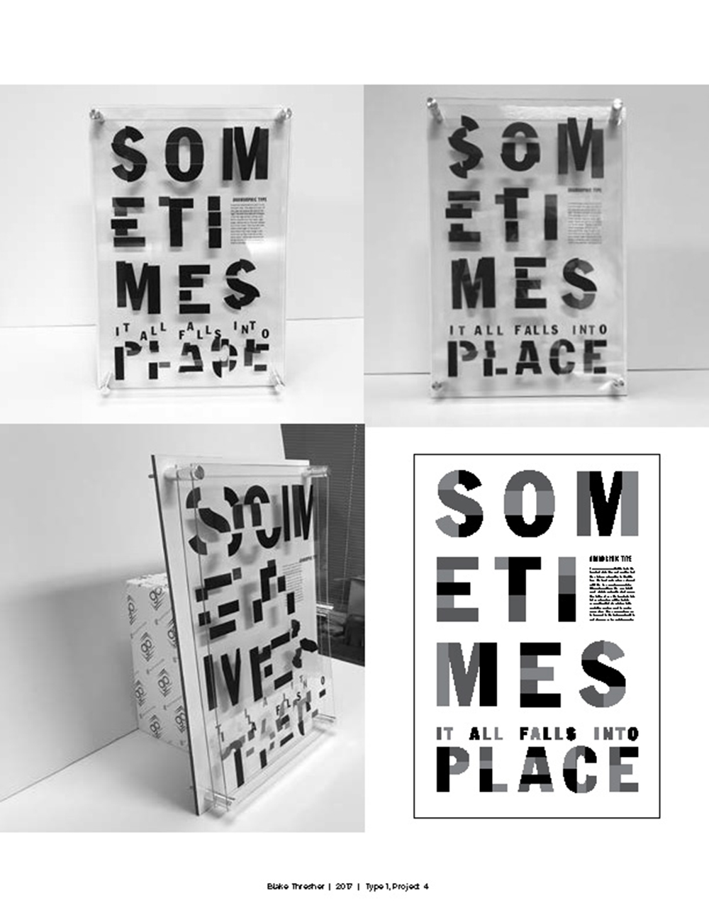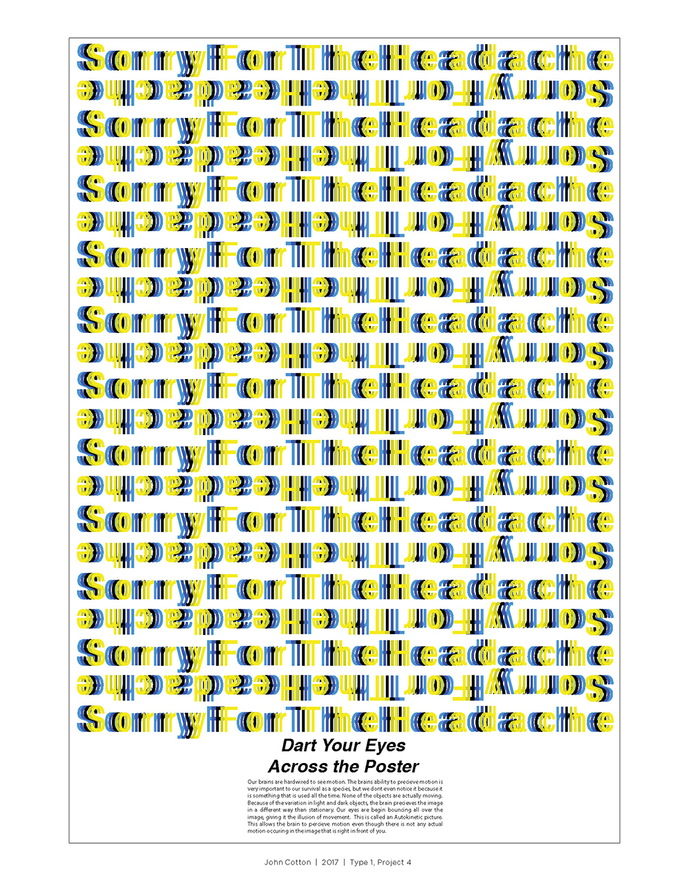 This assignment asked students to research two different cognitive theories and enact them with a typographic poster. Students were directed to watch three segments of the National Geographic show “Brain Games” and take notes.